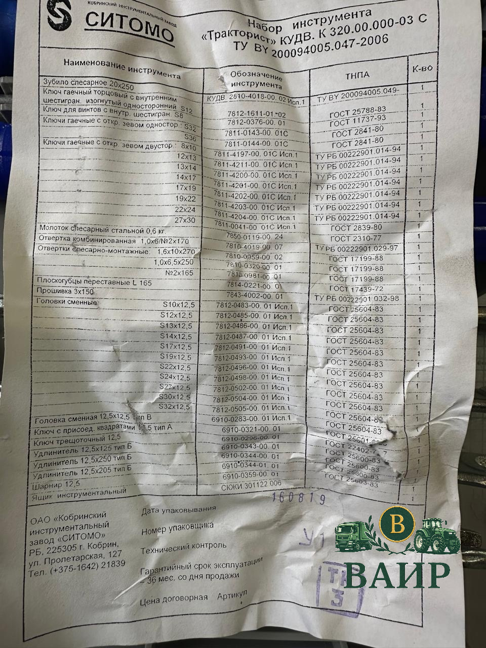 Набор инструментов Belarus ТРАКТОРИСТ